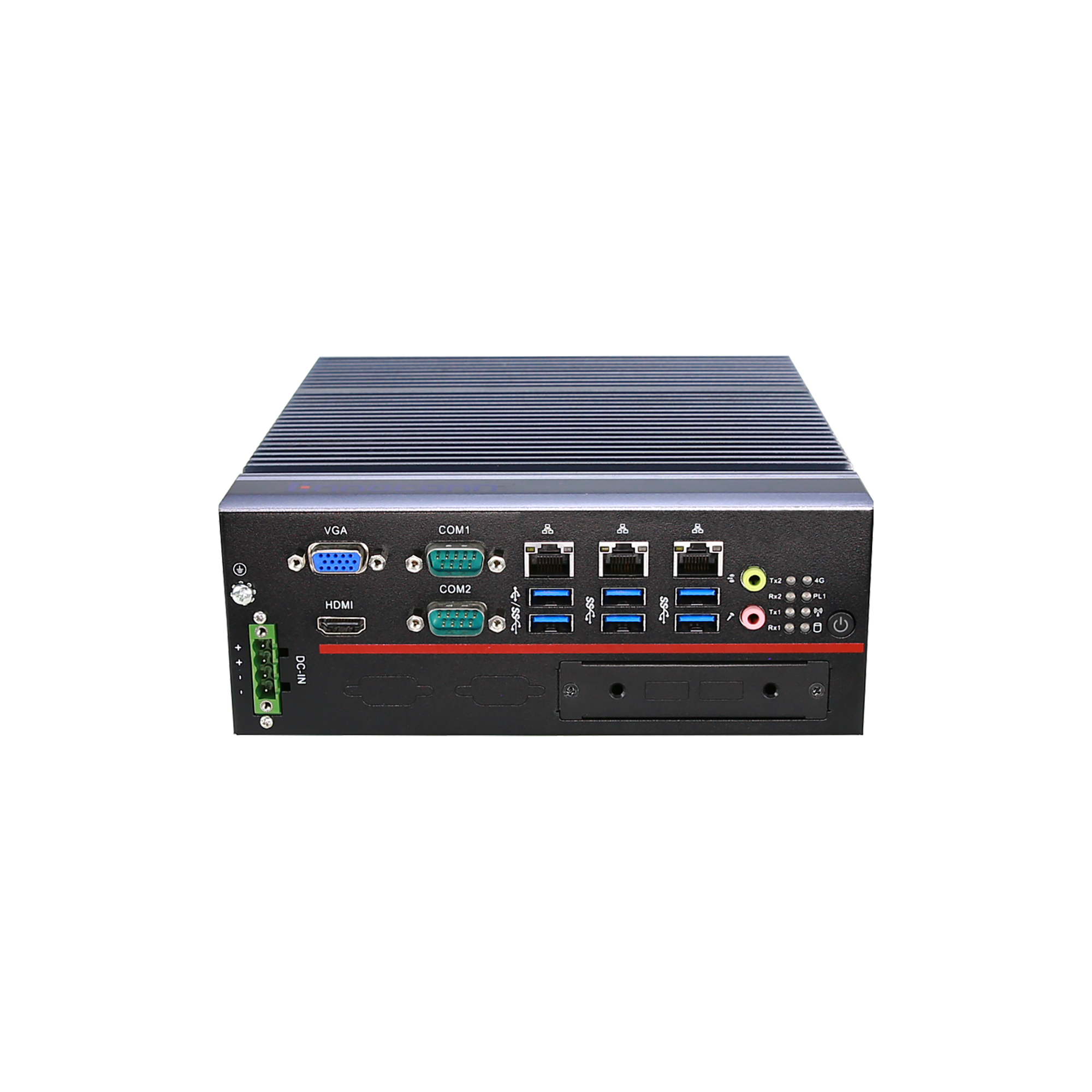 指示燈 LED 1 x Power LED (Green for Power-on, Blink for Sleep mode, Off for Power-off) 1 x HDD LED (Red blink for Data read or write) 2 x COM1 LED for Rx1 and Tx1 2 x COM2 LED for Rx2 and Tx2 1 x Wifi communication LED (yellow blink for communication) 1 x 4G communication LED (yellow blink for communication) 1 x PL1 for user defination (can indicate CPU temperature, voltage dectact, CPU/SYS Fan speed, etc)
